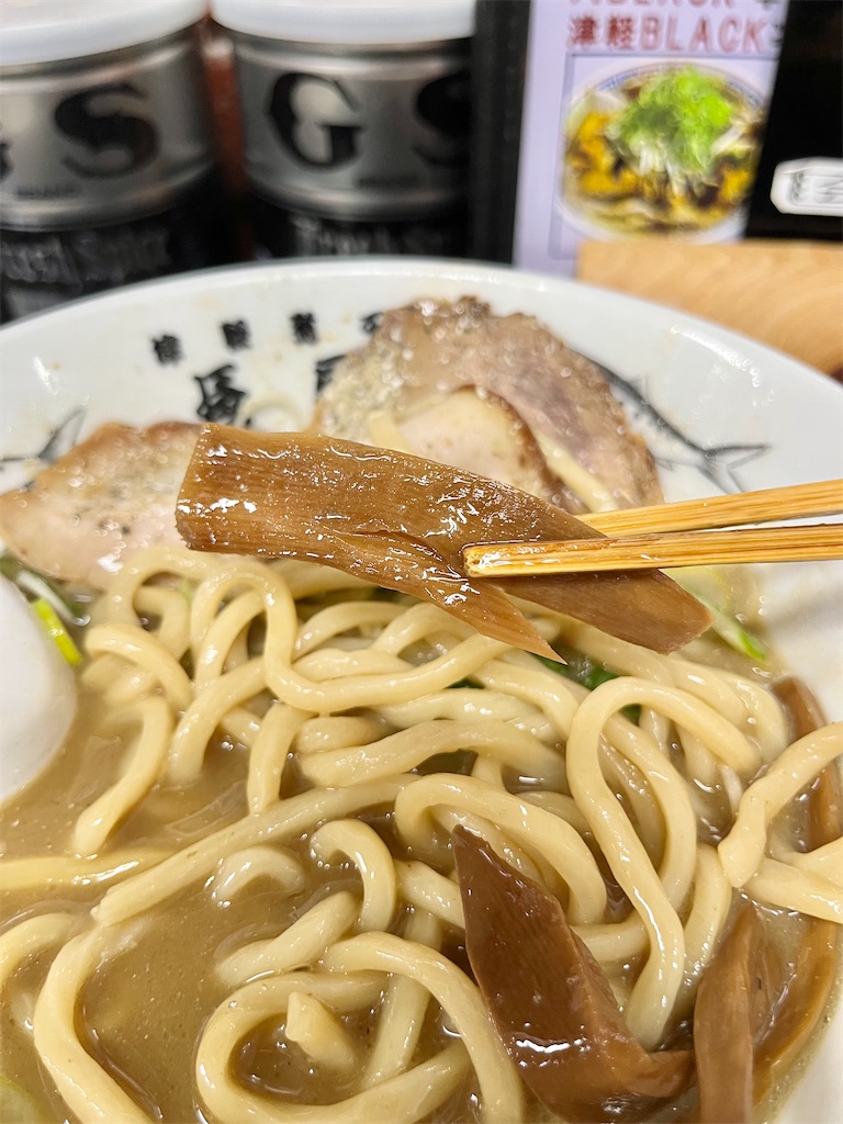 塩分は強めに感じるが、津軽だと伝統的なお店で淡麗系でも塩分強いところ多い。それよりは間違いなく塩分控えめ。しかし一般的には塩分濃いめ。全ては煮干し由来なんだろうな。