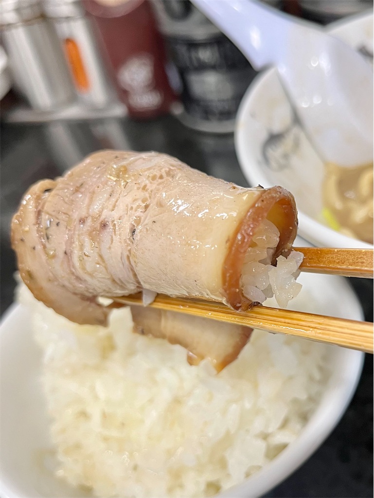 濃厚煮干しスープを表面にまとったチャーシューとライスの相性( ・∀・)イイ!!