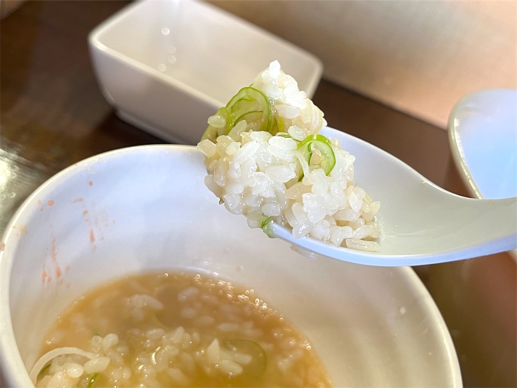 明太子完食後、スープをライスへ