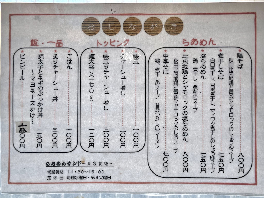 盛岡市西青山「らあめん サンド」さん