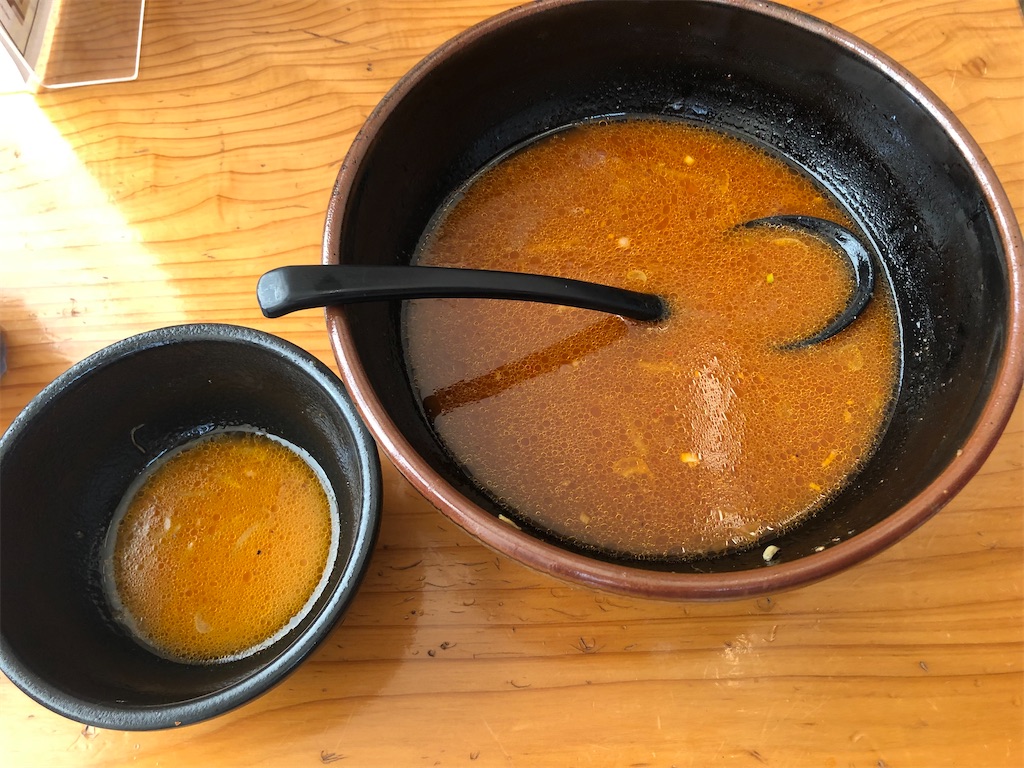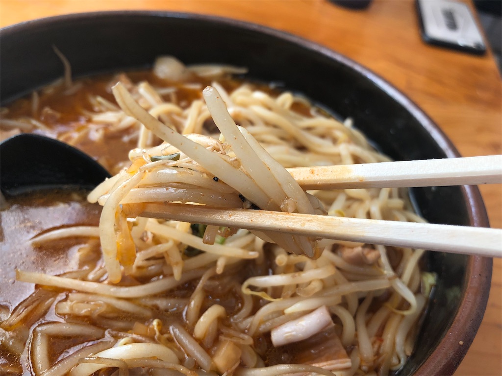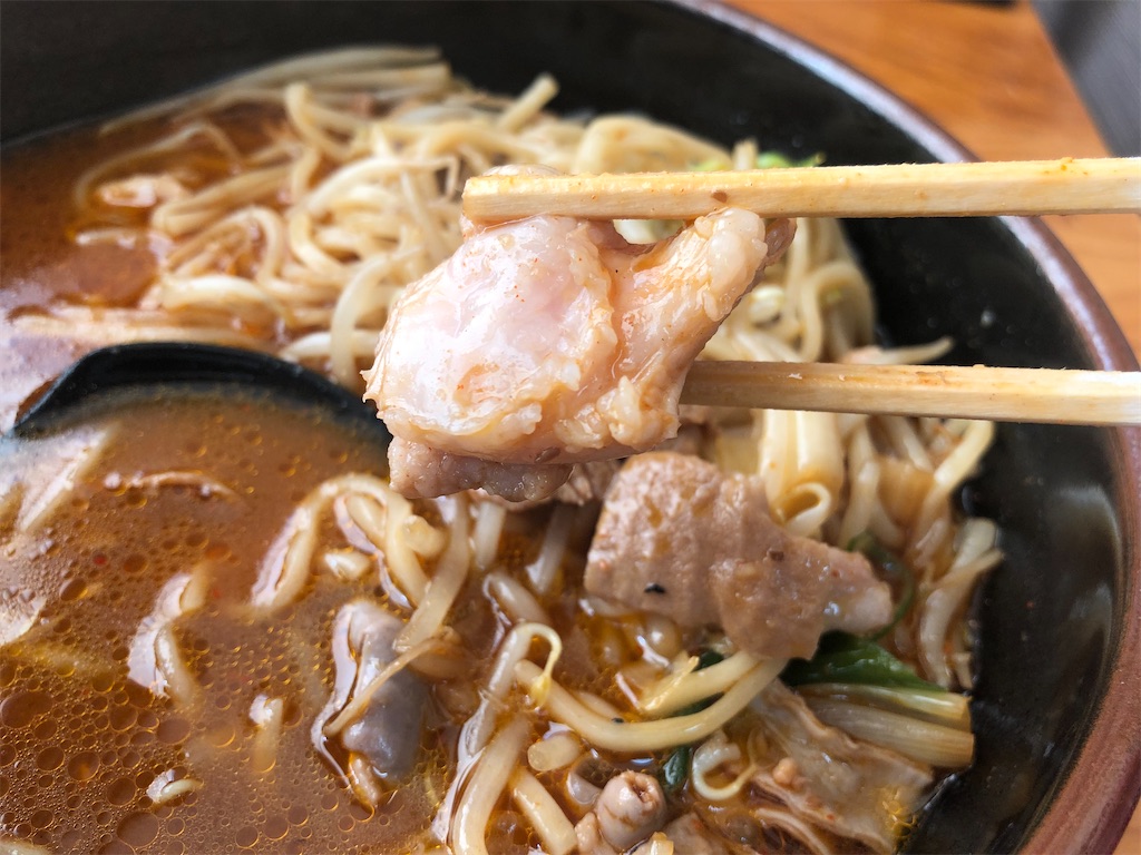 自家製麺。表面ツルツル、食感モチっと。いつまでの同じような食感続くので、たぶんのびにくいタイプ。