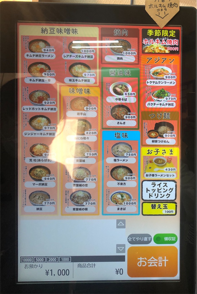 券売機(メニュー)