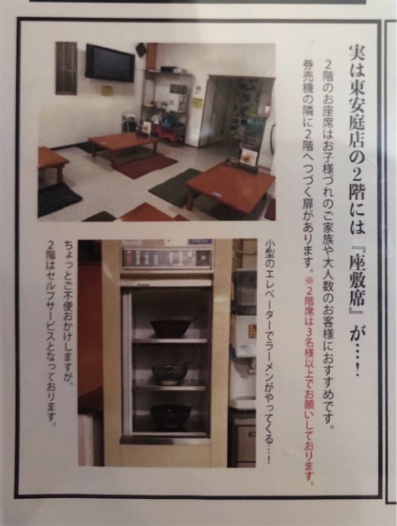 2階にも小上がりあったの、卓上メニュー裏を見て思い出した。ということで家族連れ、2階席の方がおススメ。