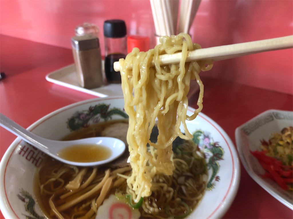 まさに昭和の中華そばといったスープ。特徴はとしては、まろやかさ。見た目のアブラ具合でベースとして鶏ガラは使っているだろうが、昆布メインかな?魚介系がやや強いと思う。あといろんな野菜煮込んでいるのかな。優しい味わいで完飲した。写真撮らず。