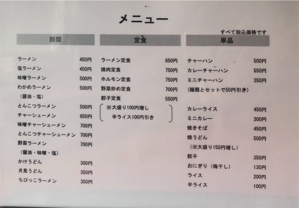 ラーメン 450円