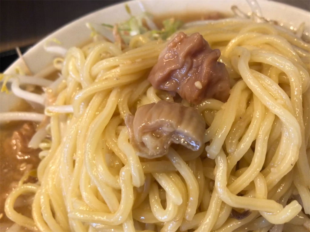 甘めの味噌。こってり。ラードがけっこう入っているかも。またニンニク効いている。思い出補正か?数年前に訪問した時は、味噌がもっと「濃すぎ」というくらい濃厚だったような。。