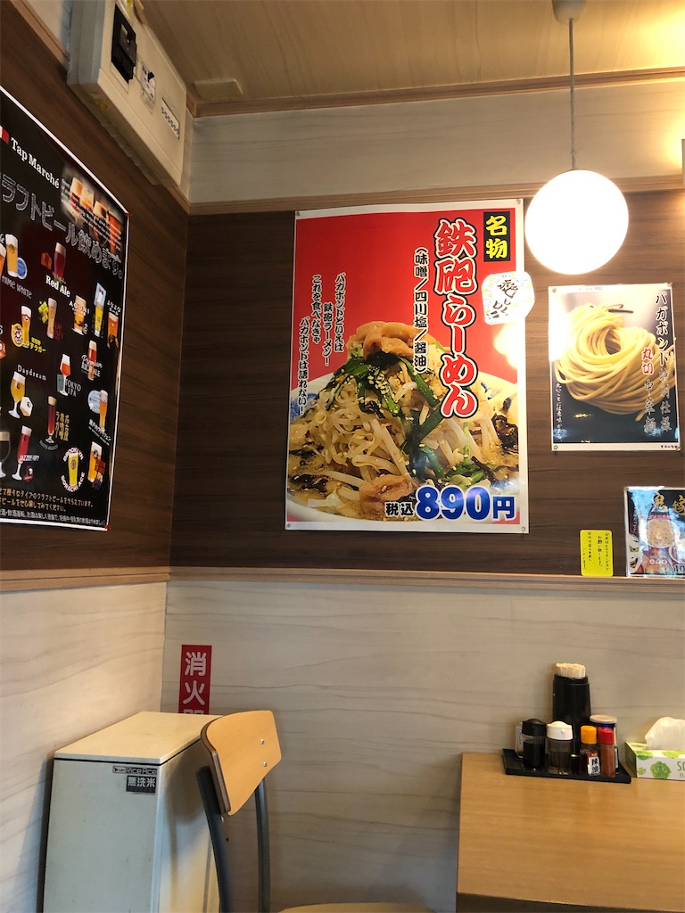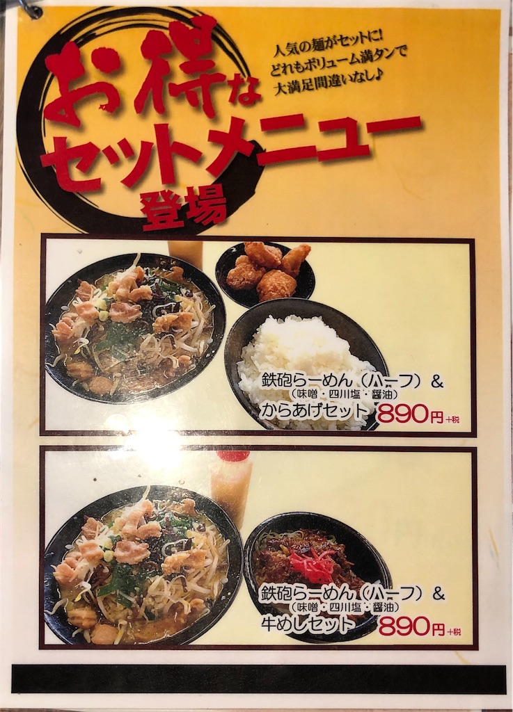 「バガボンド」さんのウリははやり「鉄砲らーめん」。味噌・四川塩・醤油の3種類からのチョイス。味噌が一番上に来ているので、やはり「味噌」がおススメなんだろう。
